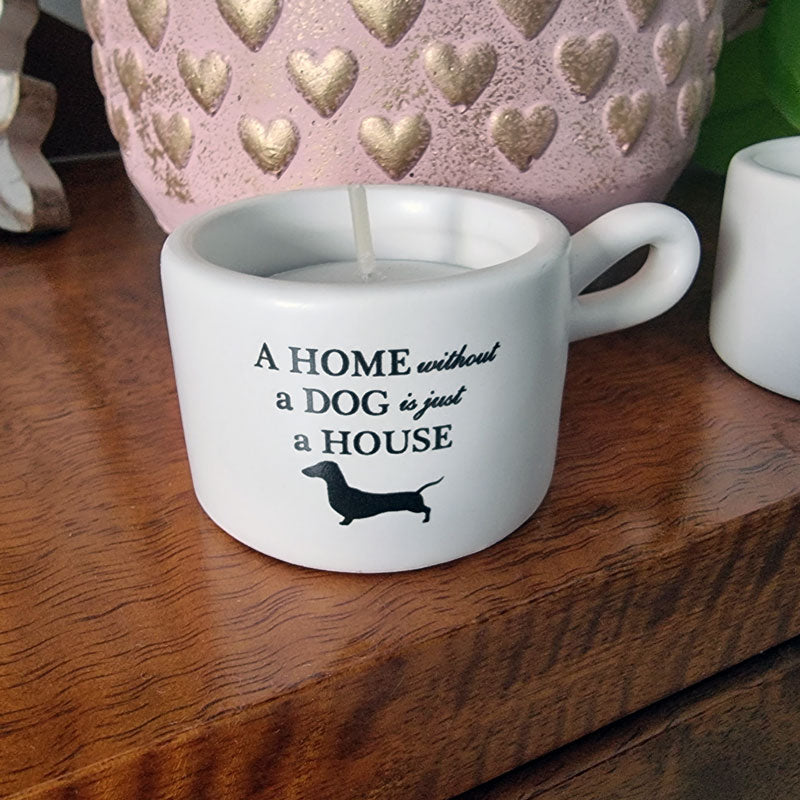 This pretty little tea light candle holder is the perfect gift idea for any dog person or a treat for yourself. Fits a standard tea light candle perfectly.