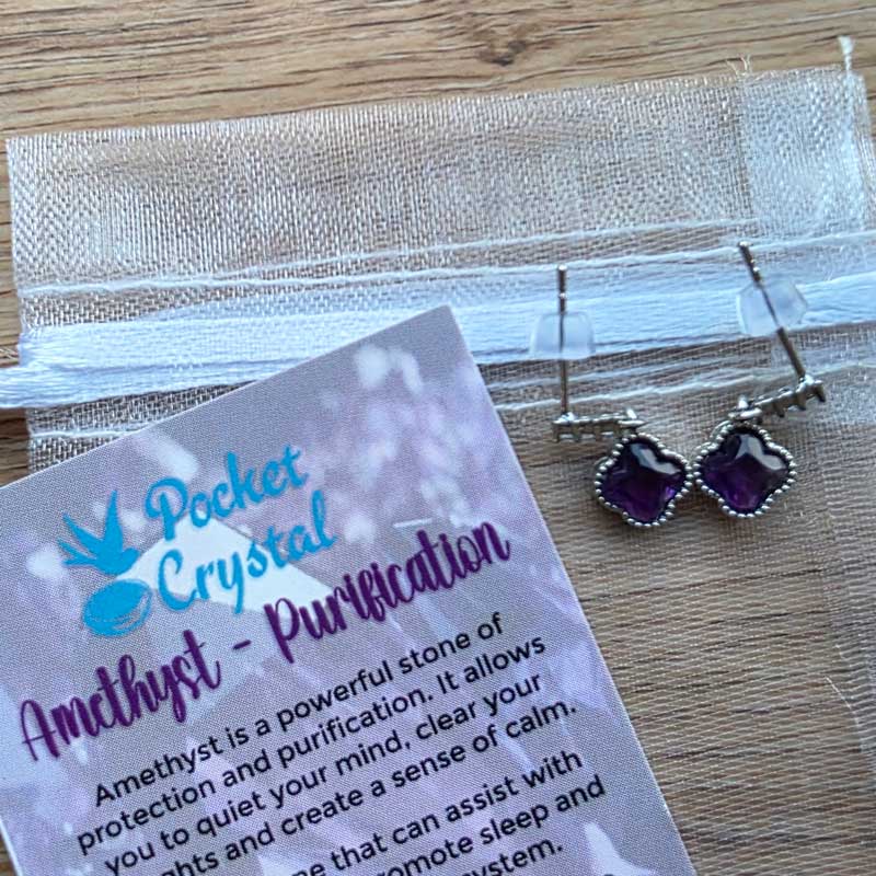 A simple, elegant and beautiful set of stud earrings featuring amethyst crystal. Crafted from sterling silver so perfect for sensitive ears.