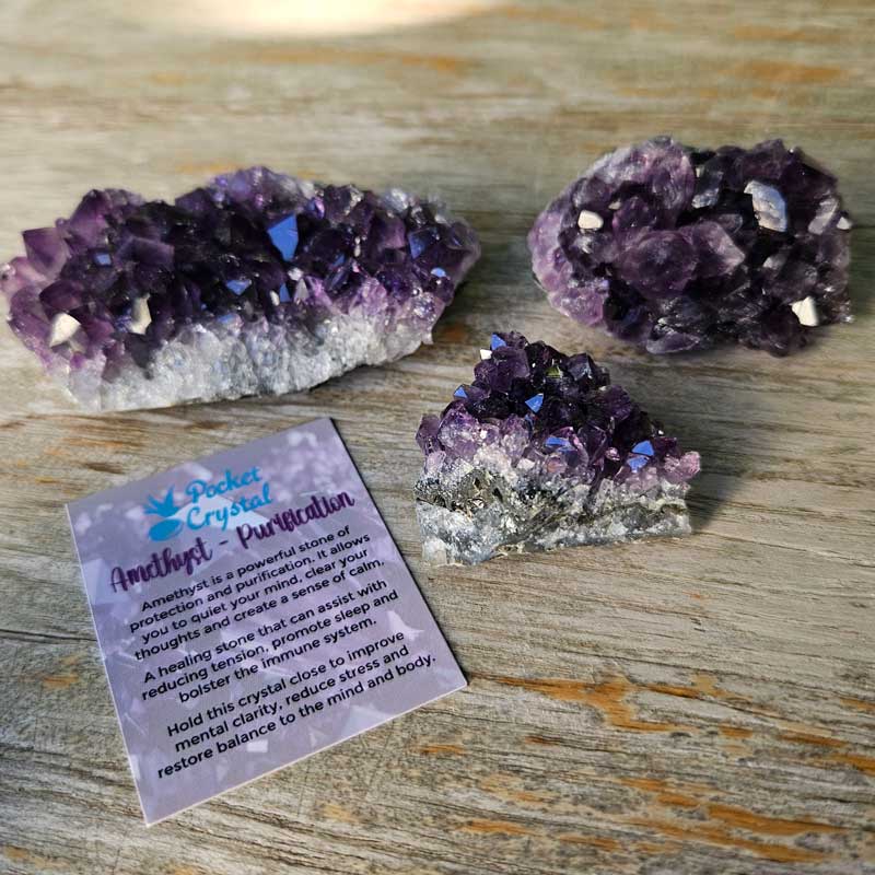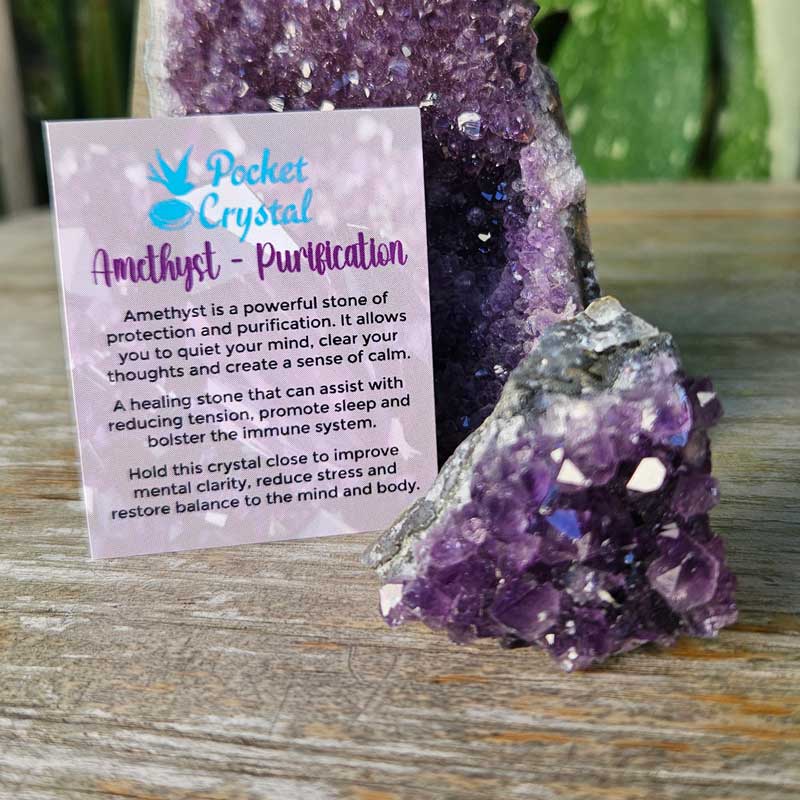 This beautiful Amethyst Pocket Crystal Cluster has been designed to be the ultimate pocket-sized meaningful gift for someone special.