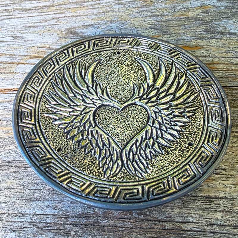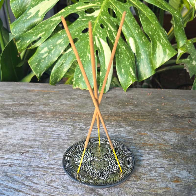 Burn your incense in style with this beautifully made incense holder. Crafted from aluminium and features an angel wing design. Holds 3 incense sticks.