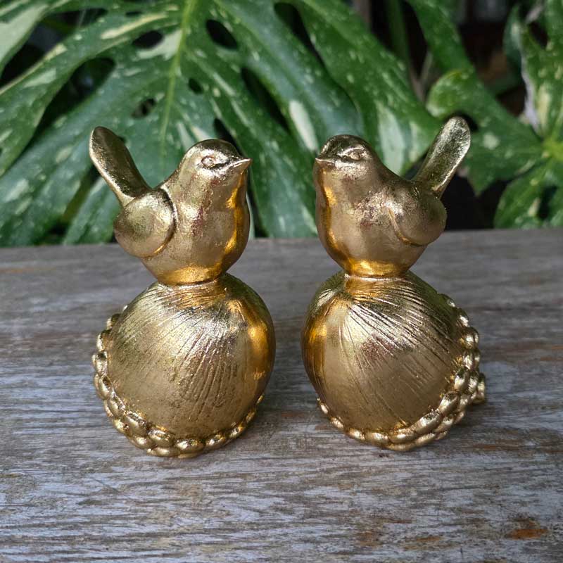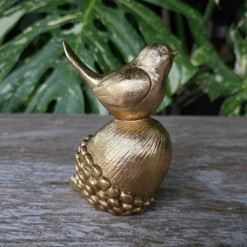 This delightful gold bird perched sweetly on an acorn, would make a delightful addition to your nest. Crafted from resin and sold individually, this sweet bird can be used on its own, you can add a second bird, or mix with the matching Bird on Pinecone.