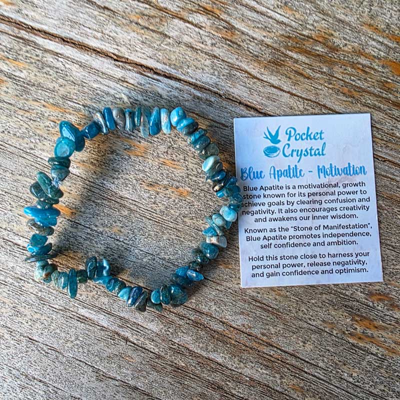 Blue Apatite is a motivational, growth stone known for its personal power to achieve goals by clearing confusion and negativity. It also encourages creativity and awakens our inner wisdom. Known as the “Stone of Manifestation”, Blue Apatite promotes independence, self confidence and ambition. Blue Apatite helps to harness your personal power, release negativity, and gain confidence and optimism.