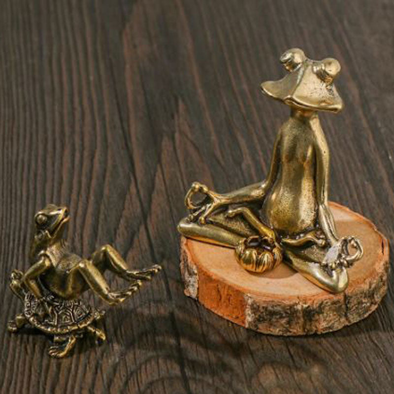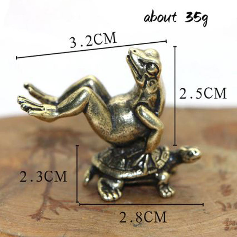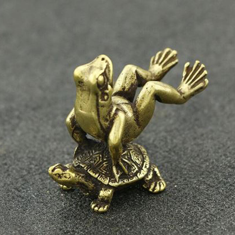 Brass Frog Sitting On Turtle