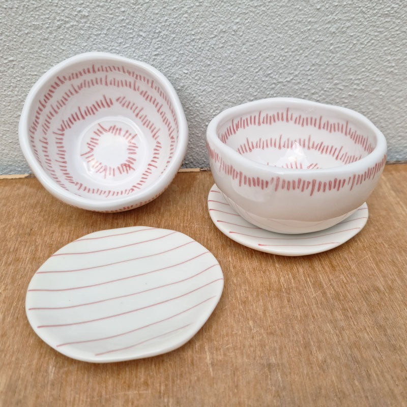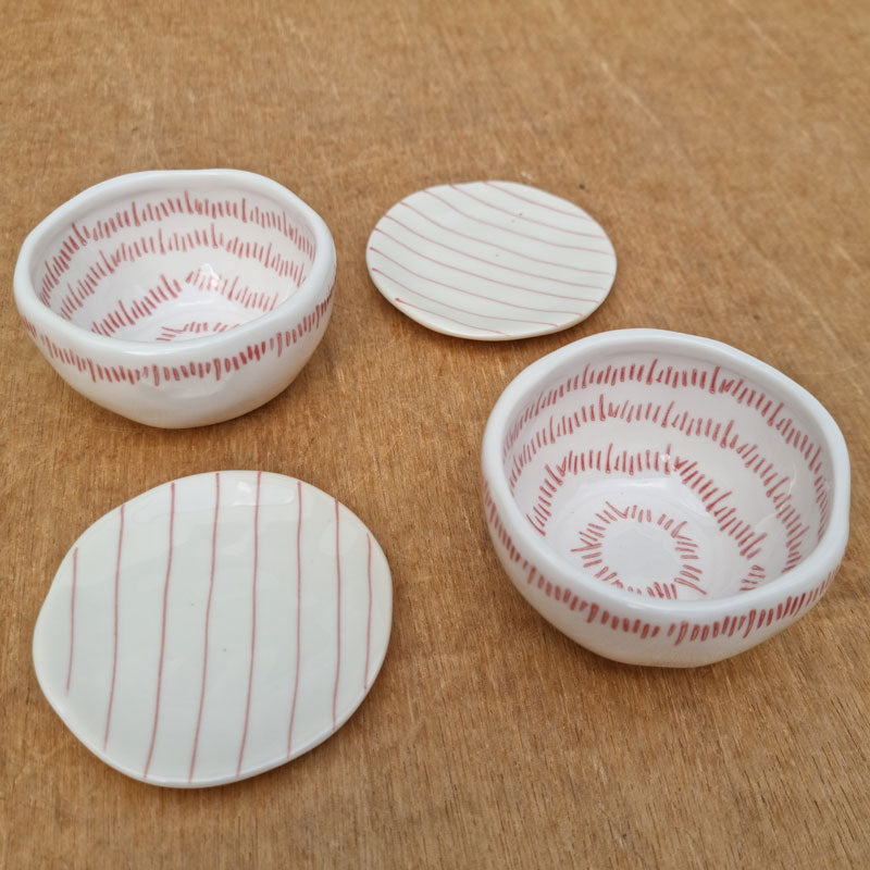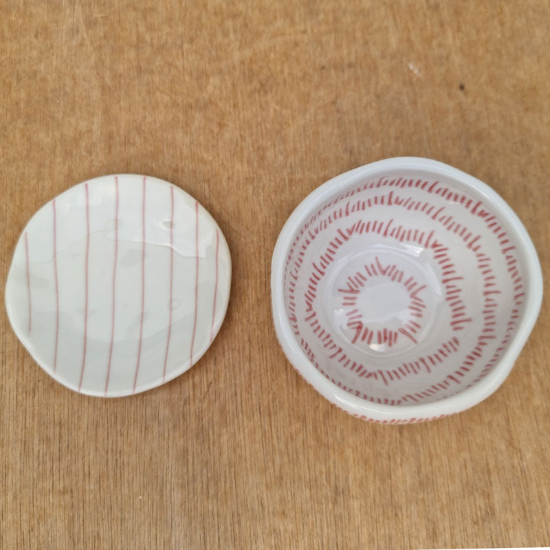 This pretty ceramic trinket dish, featuring a striped design, will look perfect on a dresser or bathroom vanity, holding your rings, hair ties or other bits and pieces.
