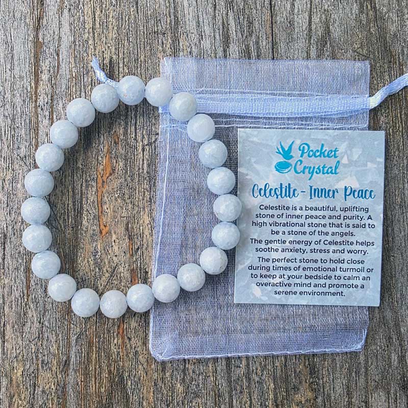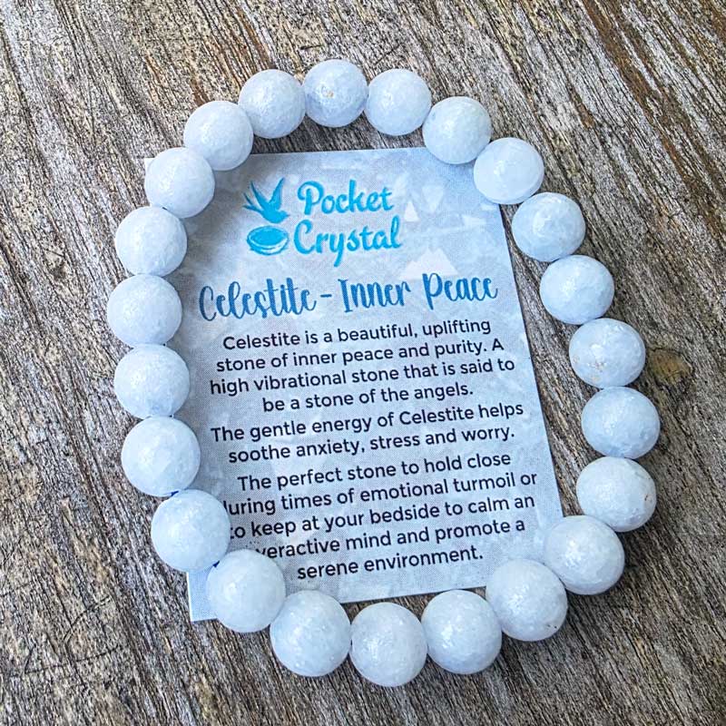 Celestite is a beautiful, uplifting stone of inner peace and purity. A high vibrational stone that is said to be a stone of the angels. The gentle energy of Celestite helps soothe anxiety, stress and worry. The perfect stone to hold close during times of emotional turmoil or to keep at your bedside to calm an overactive mind and promote a serene environment.