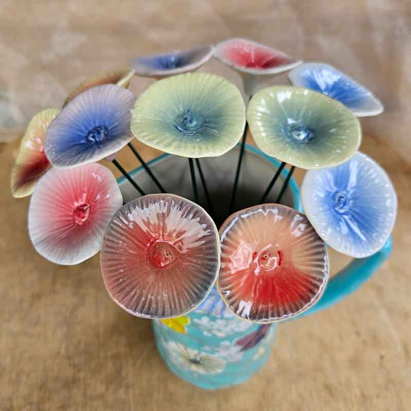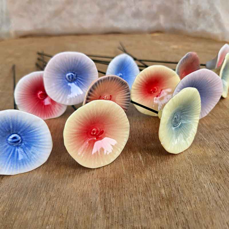 Ceramic Flower on Rod Round - 6 Colours