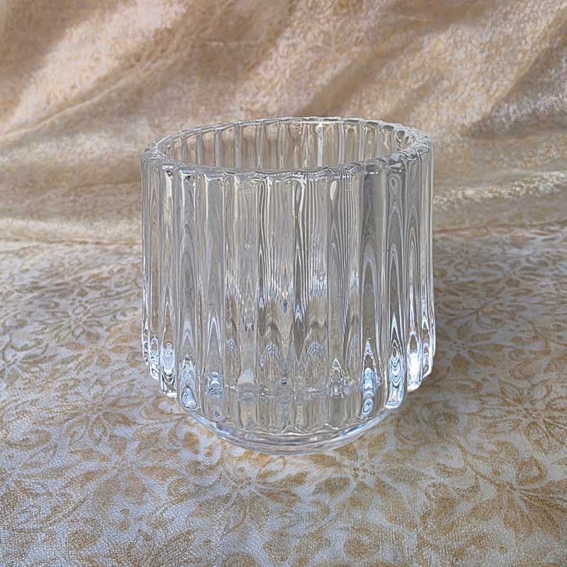 This beautiful glass candle holder has been crafted in a ripple design that is perfect for holding a tealight candle.