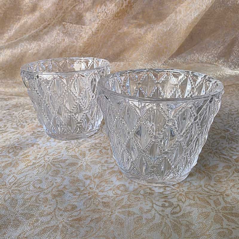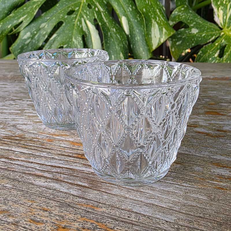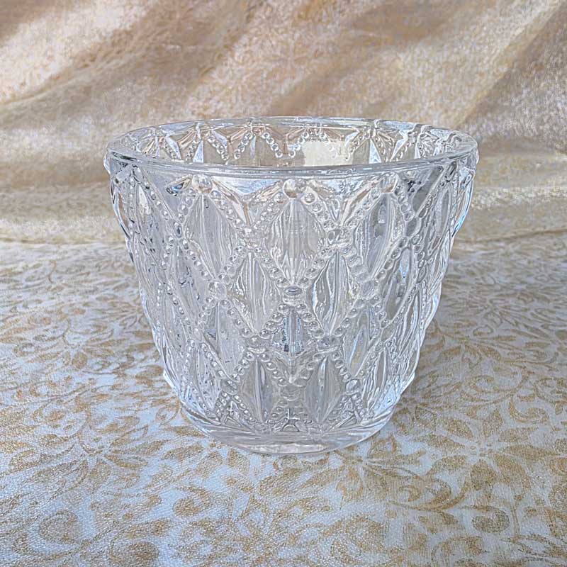 This beautiful cut glass candle holder has been crafted in a vintage style diamond design that is perfect for holding a tealight candle.