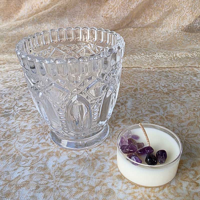 This beautiful glass candle holder has been crafted in a vintage style heirloom design that is perfect for holding a tealight candle.