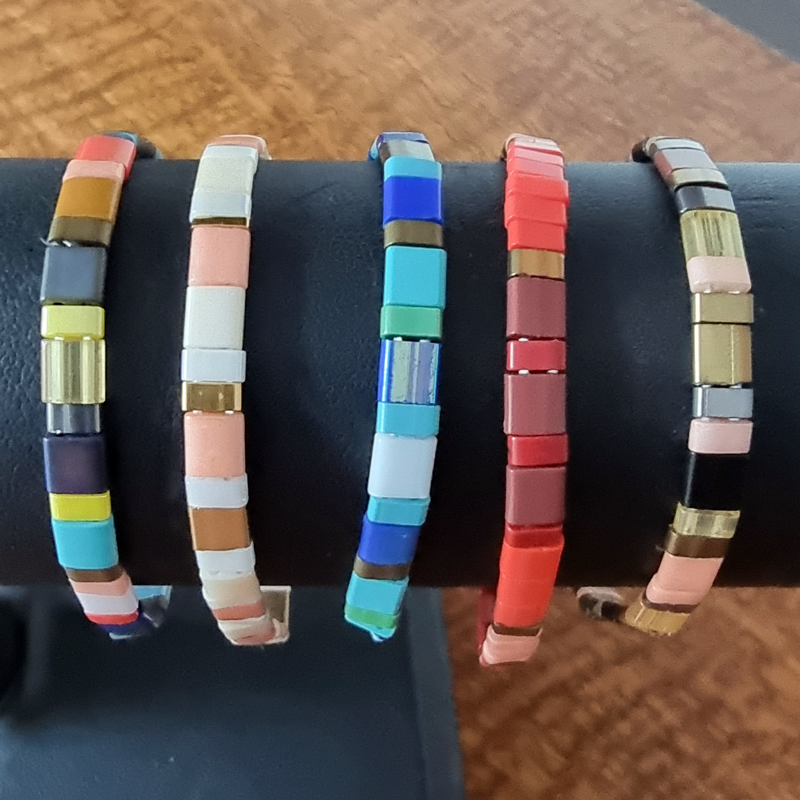 This boho inspired tile bracelet will add the perfect splash of colour to your wrist. Sold individually but look great stacked together or worn with your own gold bangles.