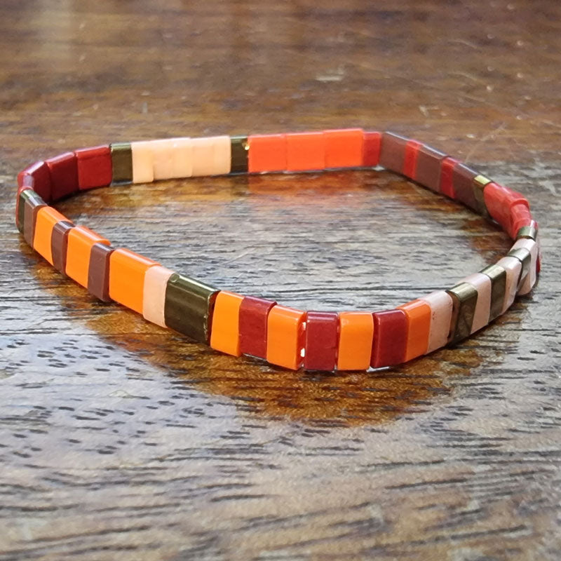 Gypsy Boho Tile Stretch Bracelet - Orange & Red