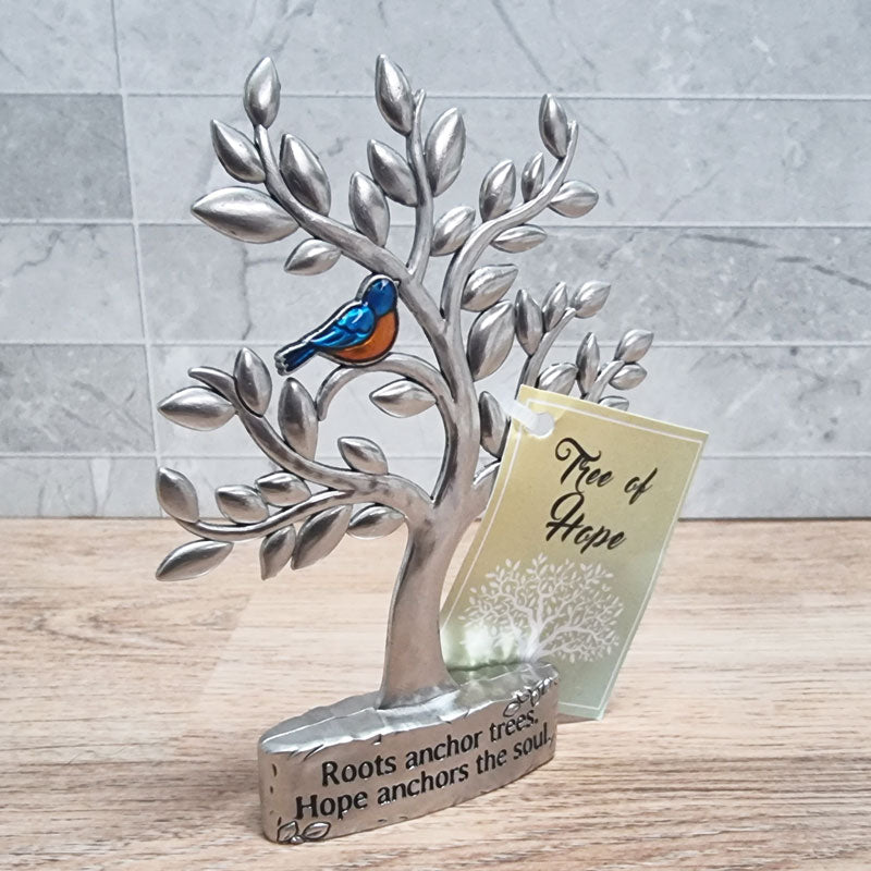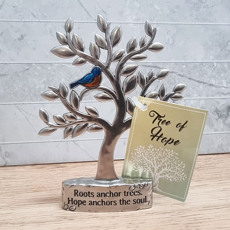 The beautiful tree of life symbolises the concept of a many branched tree illustrating the idea that all life on earth is related and interconnected. This lovely Tree of Hope is the perfect little gift idea for a friend or family member. Features the inspirational words "Roots anchor trees. Hope anchors the soul".
