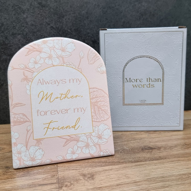This standing ceramic plaque features the beautiful words "Always my mother, forever my friend". Comes gift boxed so is the perfect gift for Mother's Day, mum's birthday or anytime you want to show your mum how much she means to you.