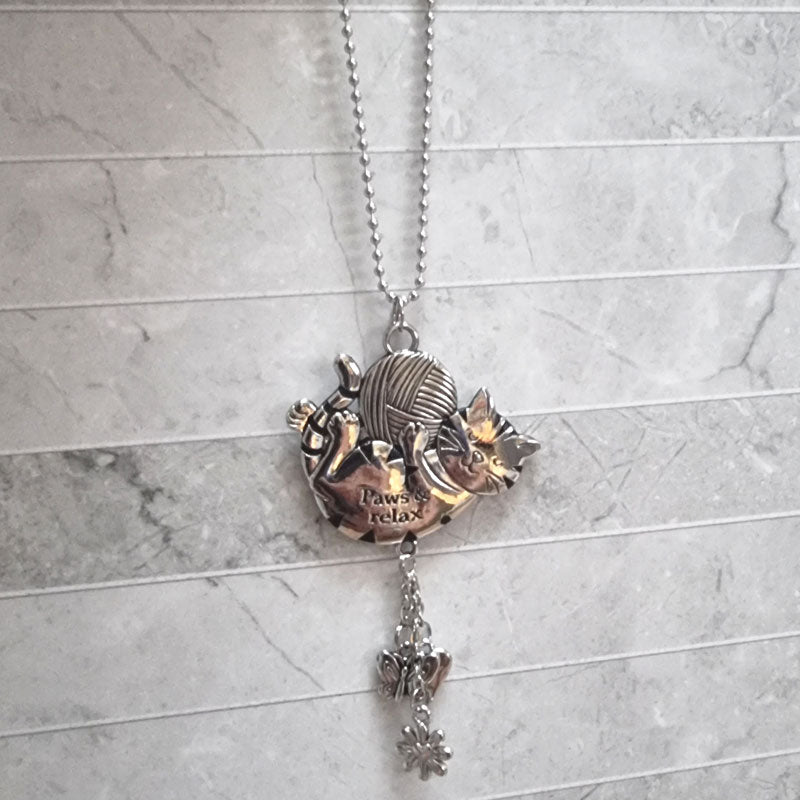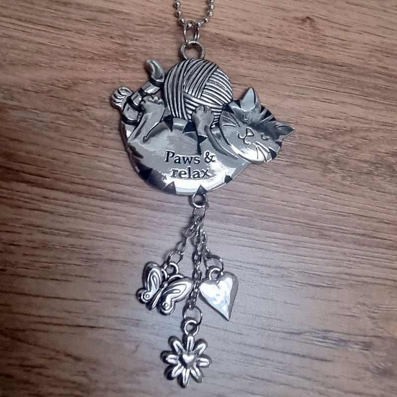This cute cat charm is perfect to hang in the car or in the home. A little reminder to paws and relax each time you see it! Beautifully crafted from soild metal. The links can be adjusted in length.
