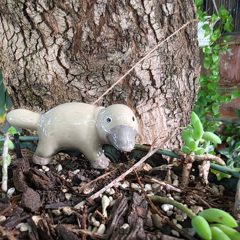 A cute platypus figurine that sits at the top of your pot plant., branch, vase or trellis. Adds a decorative touch to liven up your garden. The perfect little gift for any plant or animal lover or a treat for yourself.
