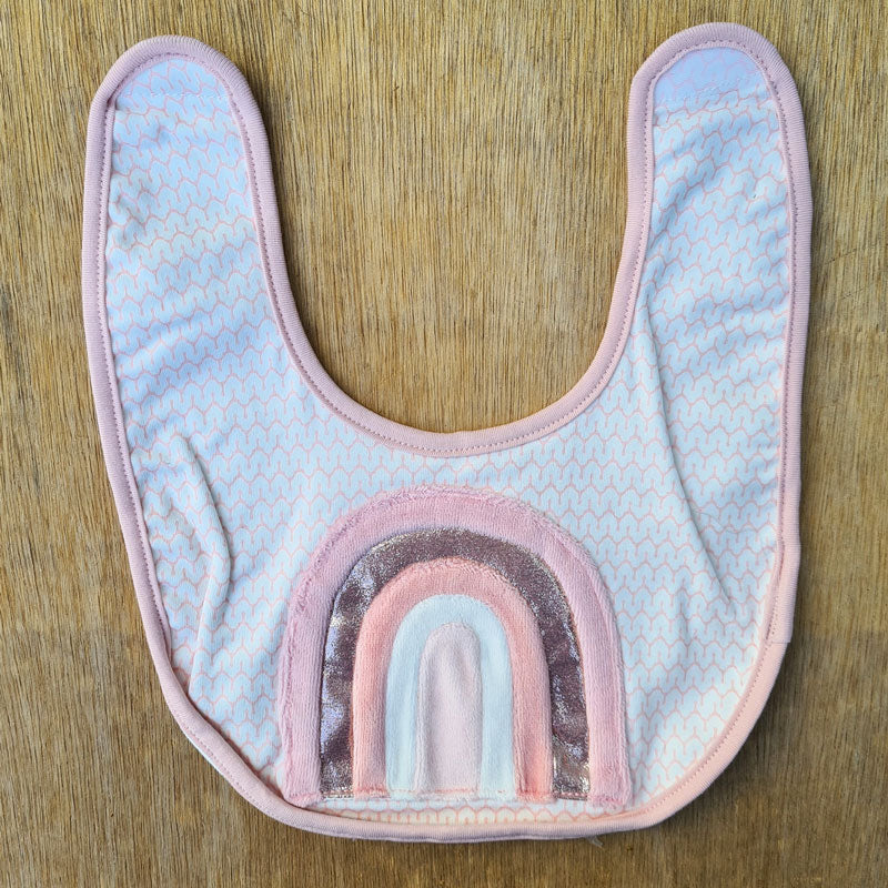 This very cute rainbow bib has been crafted in lovely soft tones and will help keep both mum and baby clean.