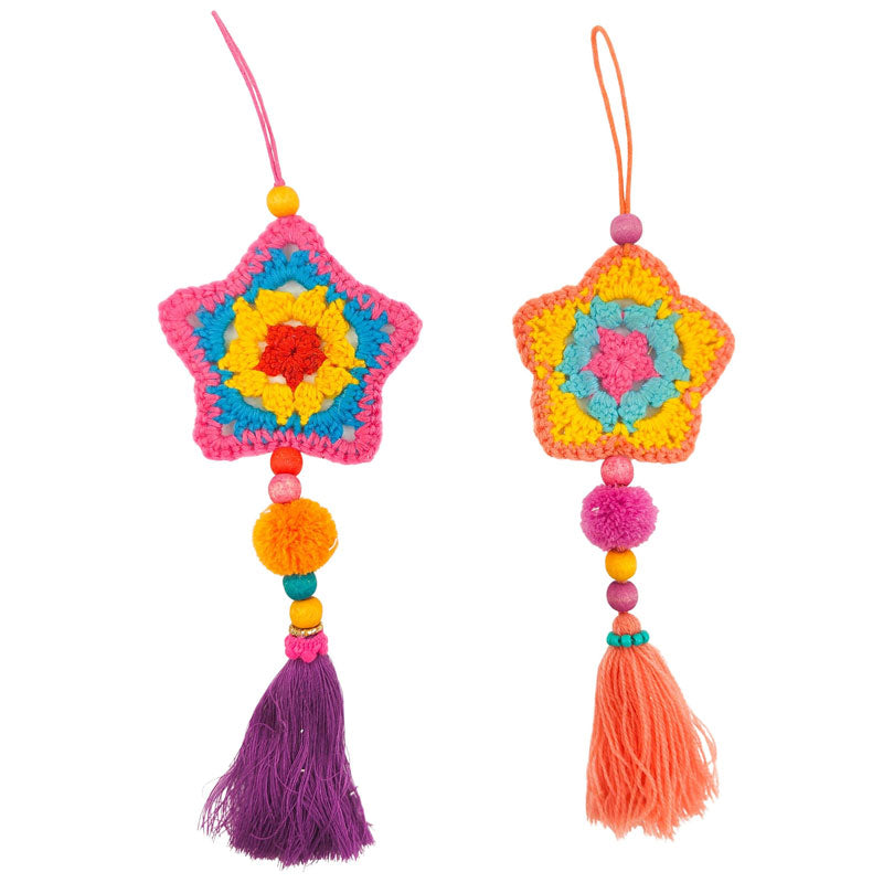Retro 70s Crochet Hanging Christmas Ornament - Star Peach