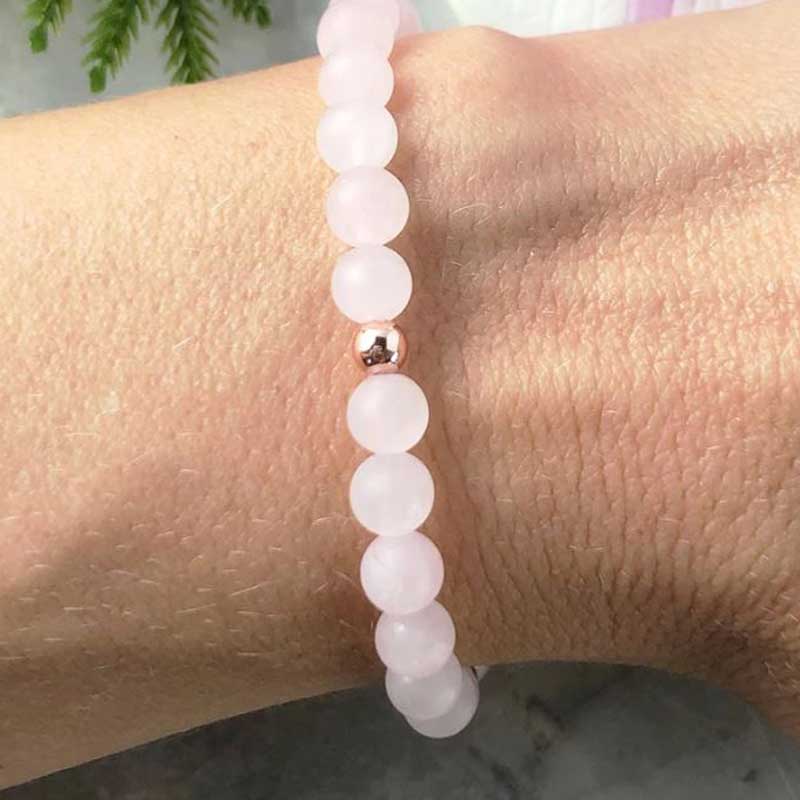 A beautiful bracelet featuring matt rose quartz beads designed to be used as a diffuser bracelet if you wish.. Simply add a few drops of your favourite essential oil to your diffuser bracelet. The stones will absorb your oil; you will be able to enjoy the therapeutic benefits throughout the day. Rose quartz, like other natural crystals, has a porous structure that allows it to absorb and hold onto essential oils. Can also be worn as a beautiful rose quartz bracelet without using oils.