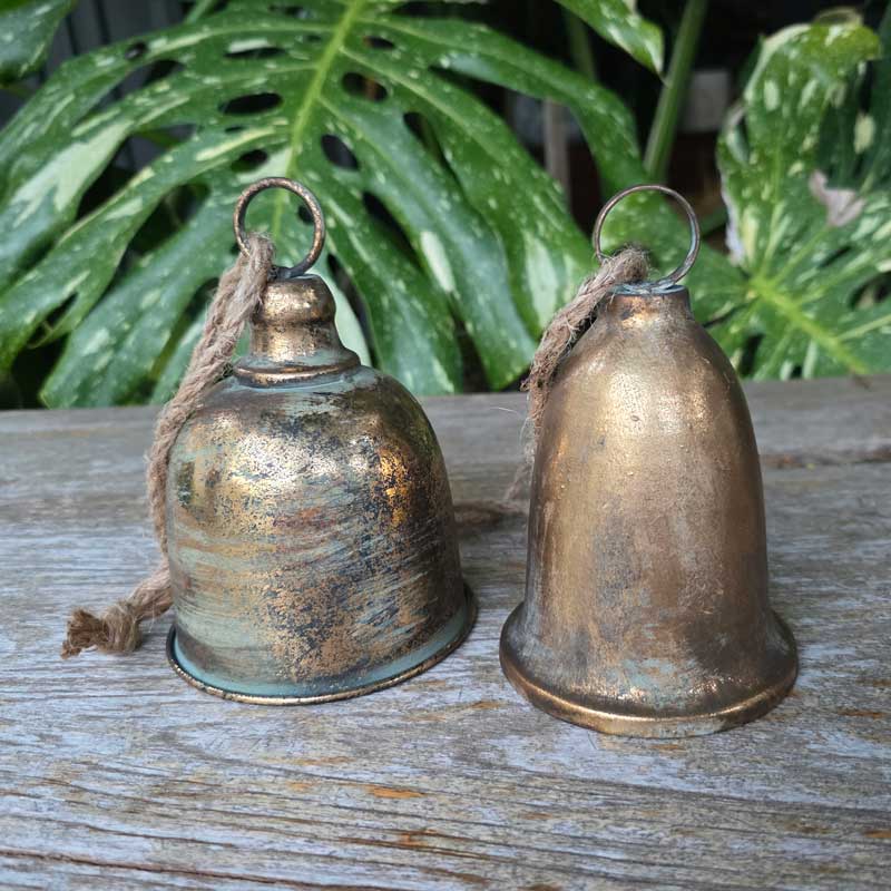 A lovely vintage style handcrafted bell in antique gold. With a rustic, time-worn finish, this bell is perfect for hanging on a door, in the garden or as part of a Christmas setting. This bell is also ideal for making Christmas bell wreaths.
