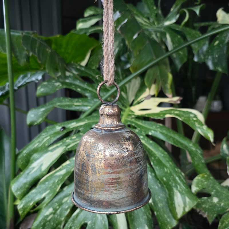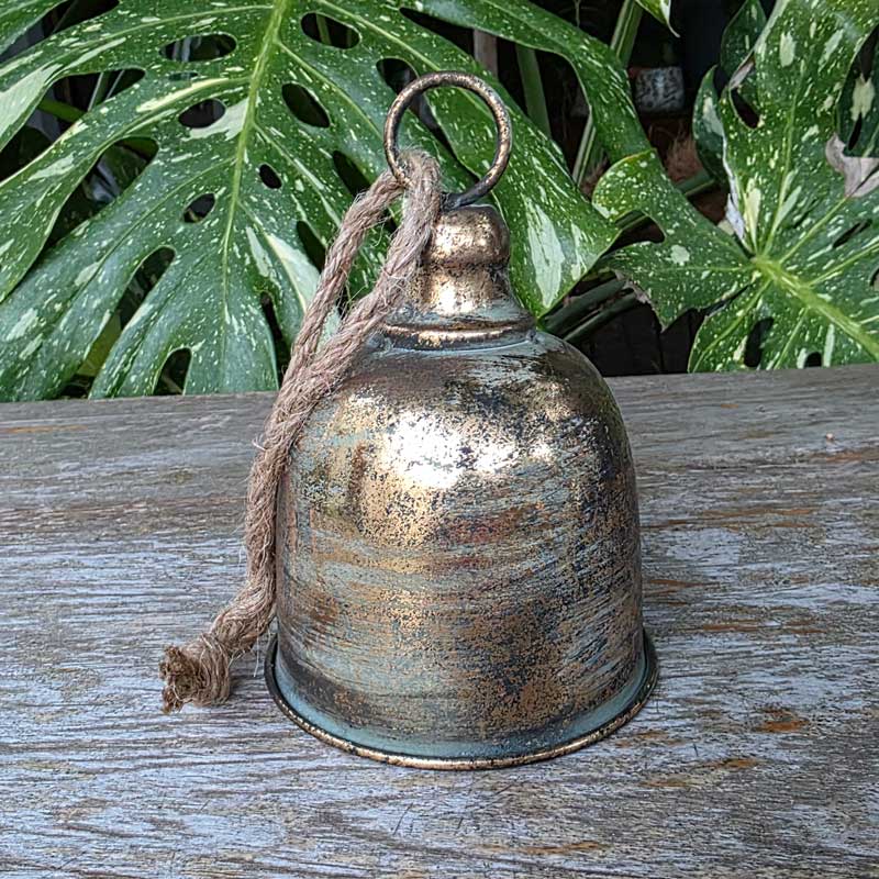A lovely vintage style handcrafted bell in antique gold. With a rustic, time-worn finish, this bell is perfect for hanging on a door, in the garden or as part of a Christmas setting. This bell is also ideal for making Christmas bell wreaths.