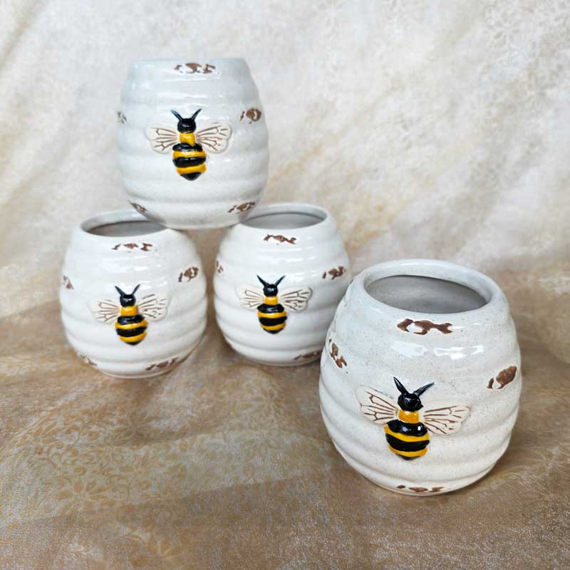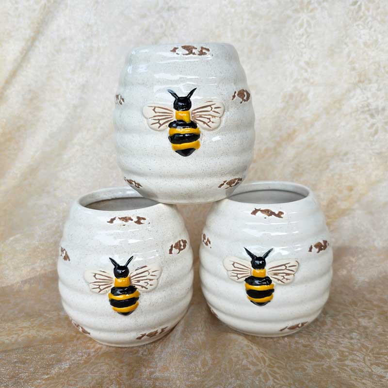 A lovely bee pot ornament that can be used for a variety of purposes - to store utensils, pencils, as a small pot planter etc. The perfect gift for anyone that loves bees.
