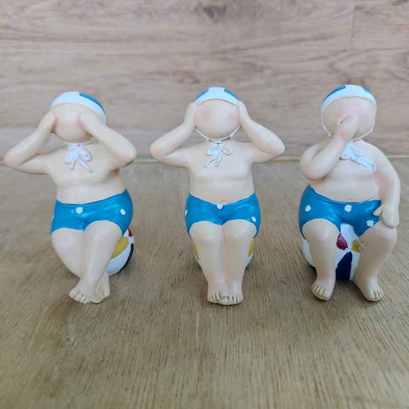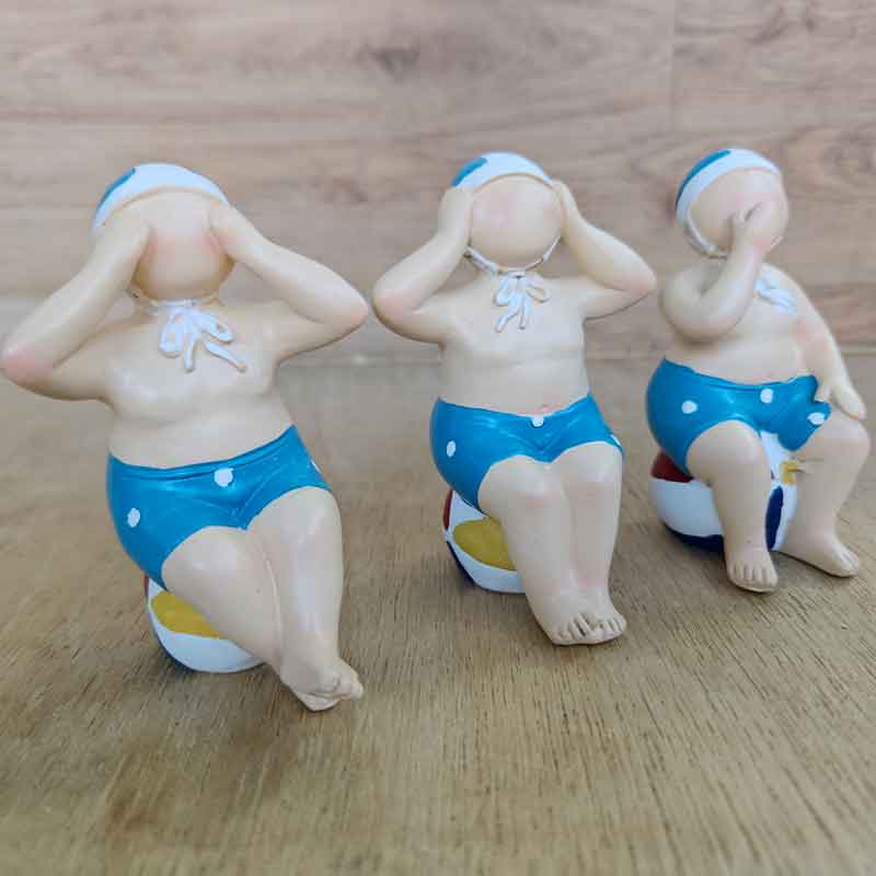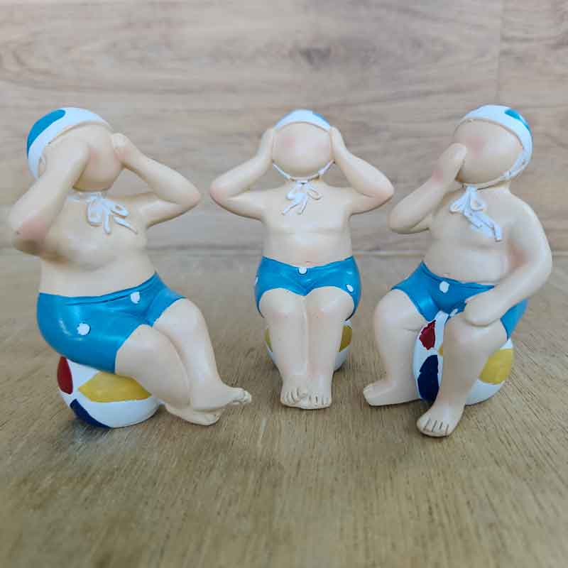 This trio of wise beach boys represents the old saying "See no evil, hear no evil, speak no evil".