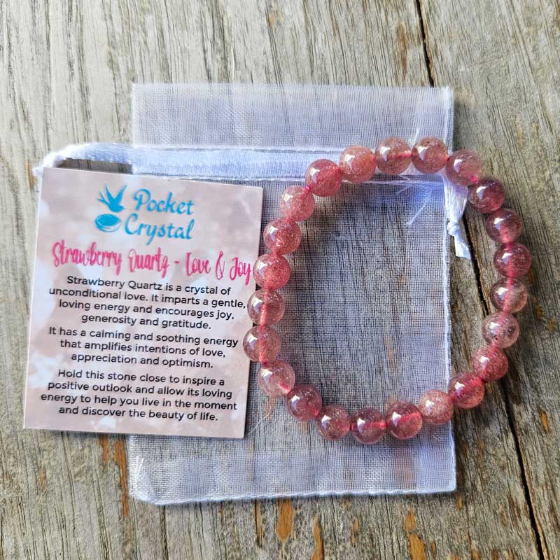 Strawberry Quartz is a crystal of unconditional love. It imparts a gentle, loving energy and encourages joy, generosity and gratitude. It has a calming and soothing energy that amplifies intentions of love, appreciation and optimism. Strawberry Quartz is said to inspire a positive outlook and allow its loving energy to help you live in the moment and discover the beauty of life.