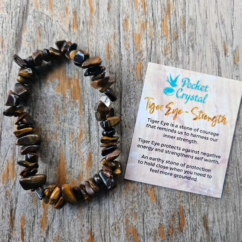Tiger Eye is a stone of courage that reminds us to harness our inner strength. Tiger Eye protects against negative energy and strengthens self worth. An earthy stone of protection that helps us to feel more grounded.