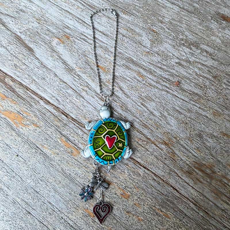 This beautiful turtle charm is perfect to hang in the car or in the home. Beautifully crafted from soild metal. The links can be adjusted in length.
