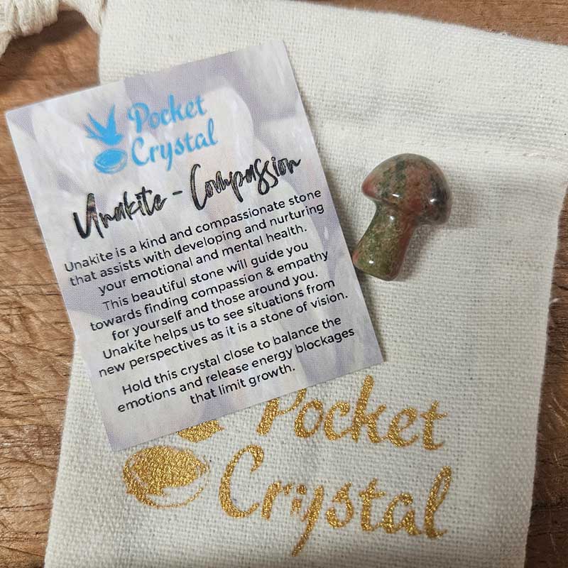 This beautiful Unakite Pocket Crystal Mushroom has been designed to be the ultimate pocket-sized meaningful gift for someone special.