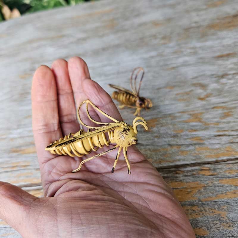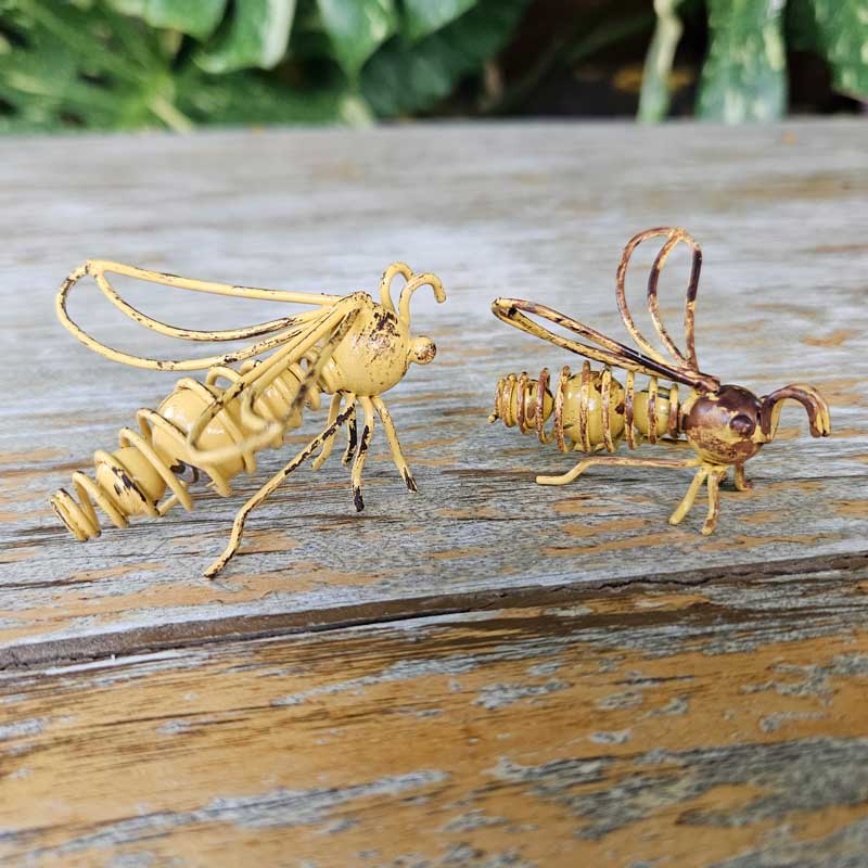A gorgeous set of 2 little wire bee garden ornaments. Adds a decorative touch to liven up your garden or can be used in any room really! The perfect little gift for any plant or garden lover!
