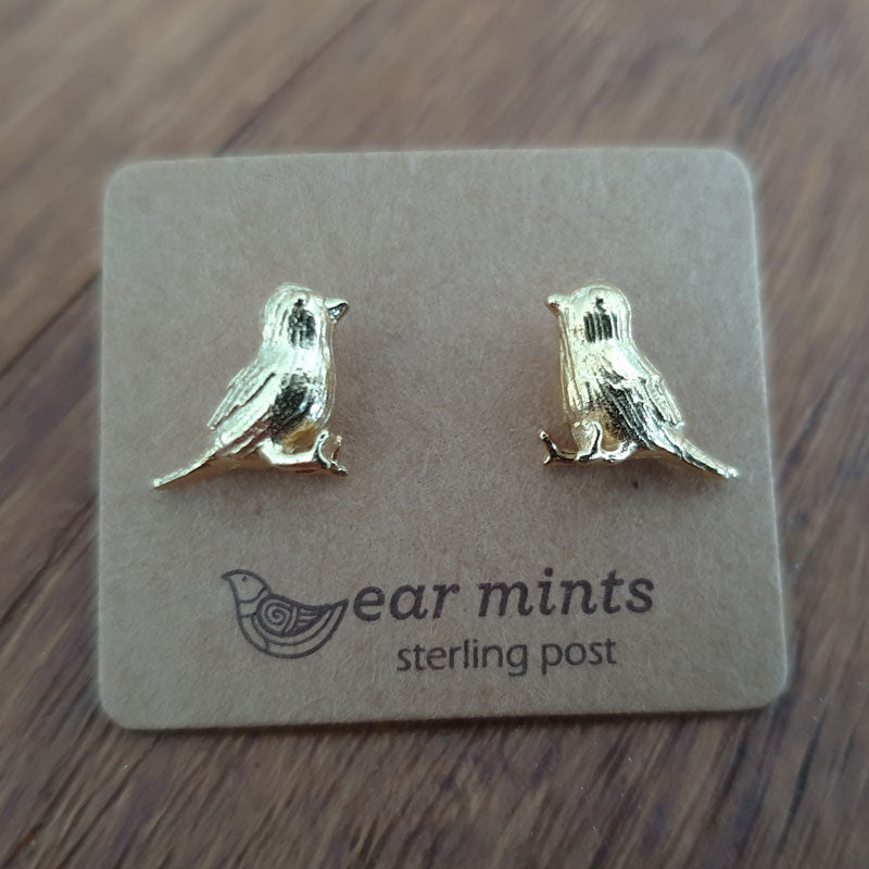Brushed Metal Tweety Bird Ear Mints Earrings - Gold