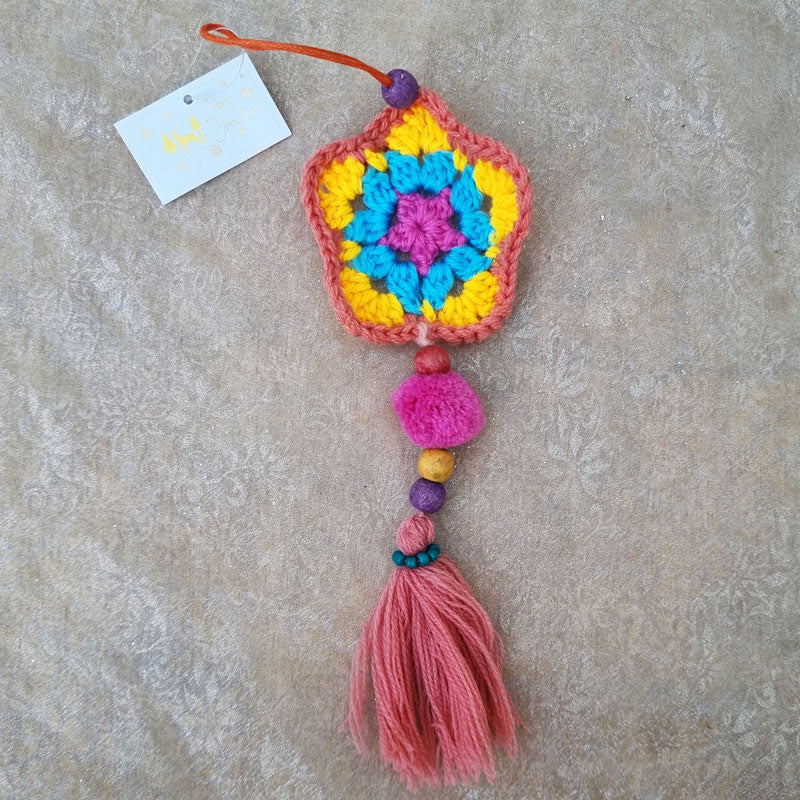 Retro 70s Crochet Hanging Christmas Ornament - Star Peach