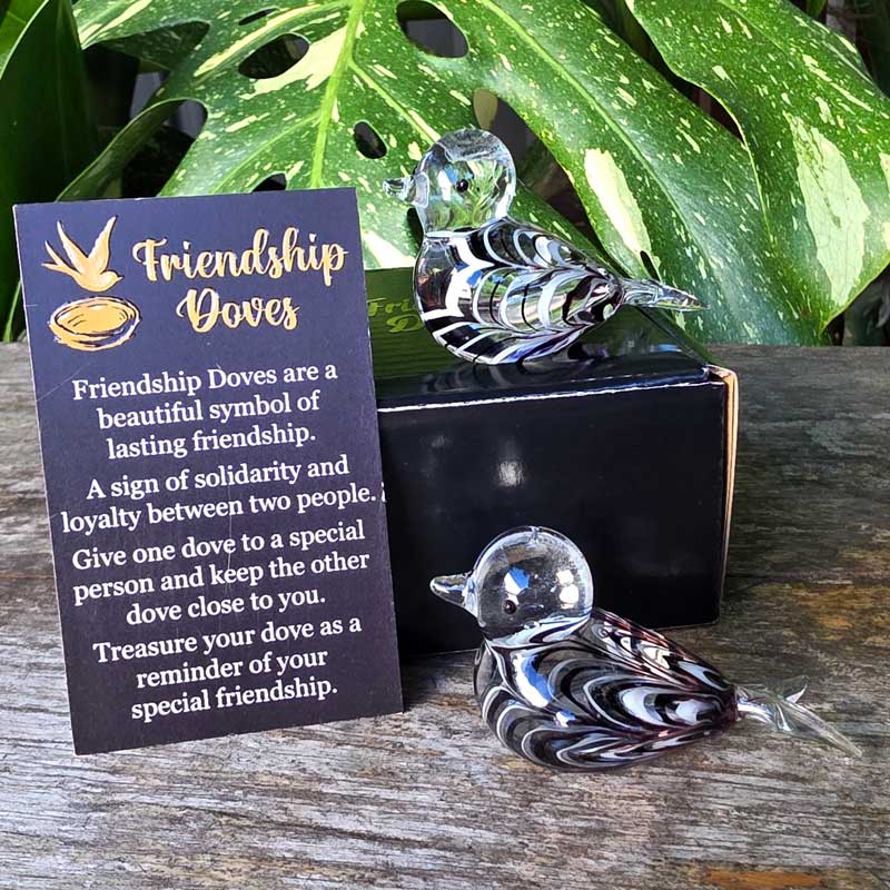 Friendship Doves are a beautiful symbol of lasting friendship. A sign of solidarity and loyalty between two people. Give one dove to a special person and keep the other dove close to you. Treasure your dove as a reminder of your special friendship.