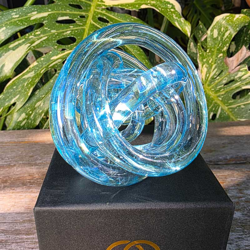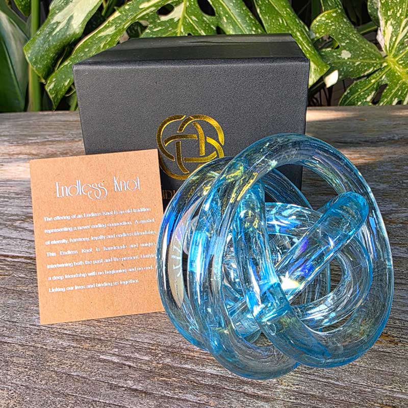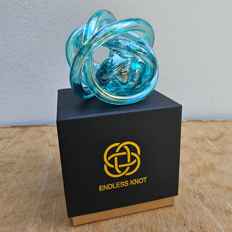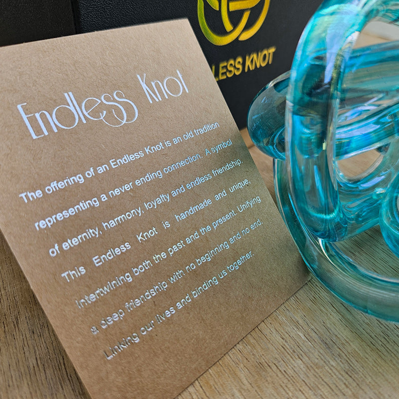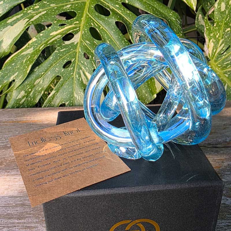 Show someone how much you care with the unique gift of an Endless Knot! This stunning Endless Knot has been hand made and mouth blown to create a one of a kind piece, perfect for a one of a kind friend, family member, partner or loved one!