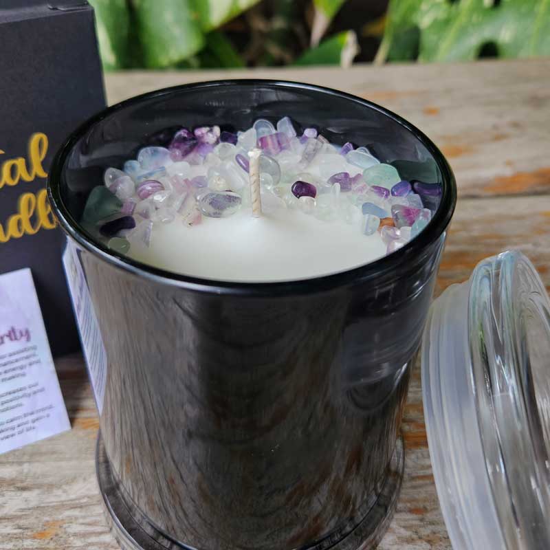 This Fluorite Crystal Soy Candle combines the perfect mix of stunning fragrance with healing crystals. Not only does this candle smell amazing, but it also contains fluorite crystals, perfect for anyone that loves the healing power of crystals.