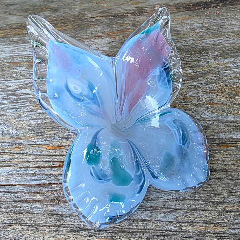 Show someone how much you care with this beautiful handmade glass Butterfly Spirit! This stunning butterfly has been hand made and mouth blown to create a one of a kind piece, perfect for a one of a kind friend, family member, partner or loved one!