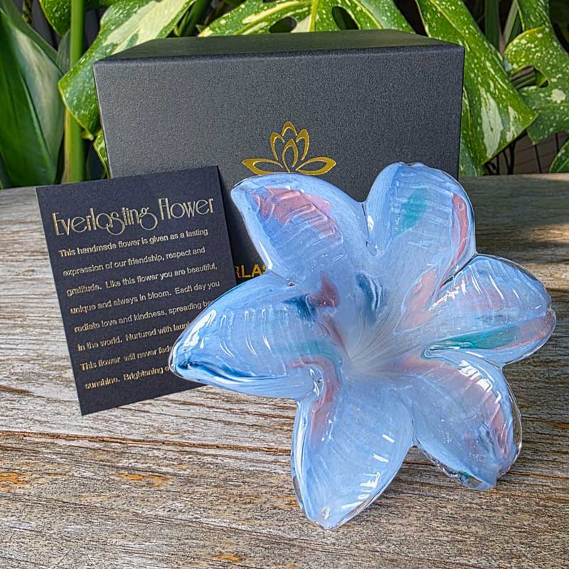 Show someone how much you care with the unique gift of an Everlasting Flower! This stunning Everlasting Flower has been hand made and mouth blown to create a one of a kind piece, perfect for a one of a kind friend, family member, partner or loved one!