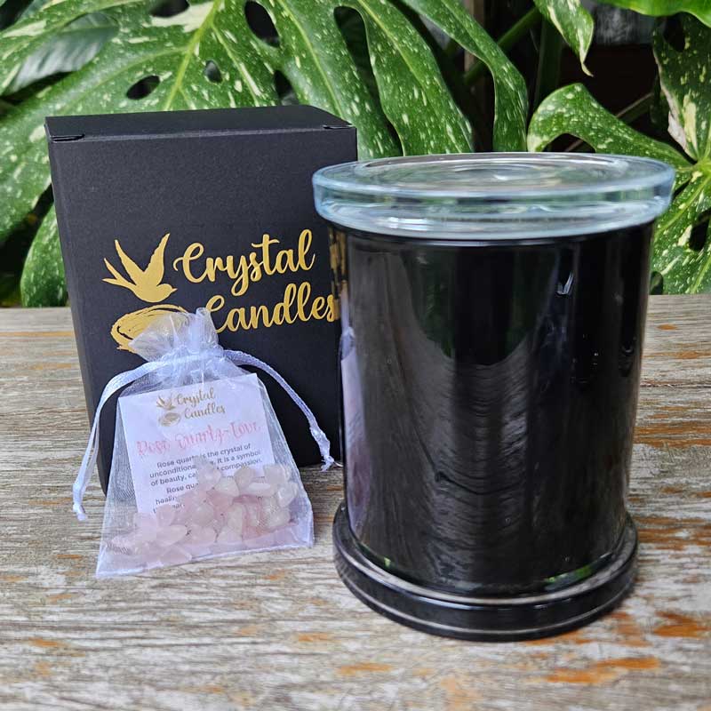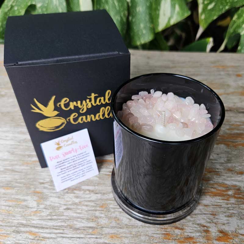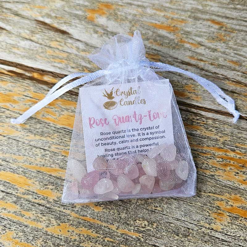 - Contains rose quartz crystals, crystal meaning card and drawstring organza bag to store the card and crystals once the candle has fully burned.