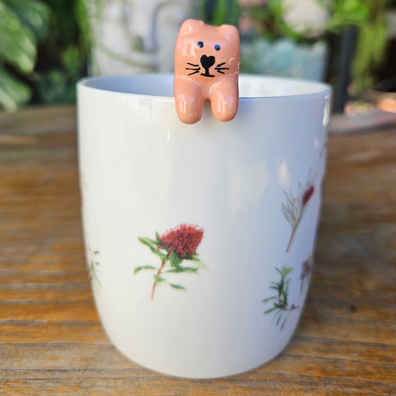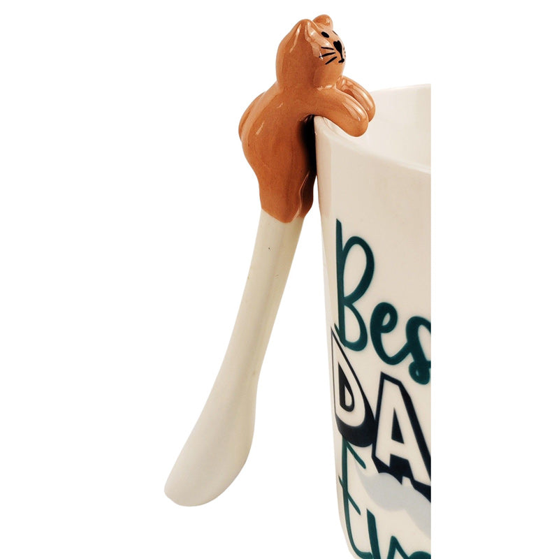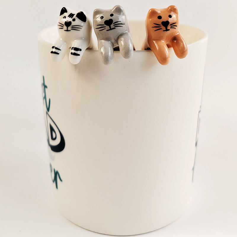 This cute cat teaspoon is the perfect little gift for any cat person or as a treat for yourself. A small teaspoon that can sit at the top of a tall mug or glass. The cute design allows the cat to hang over the edge of the mug or glass preventing the spoon from slipping into the drink.