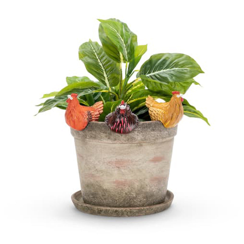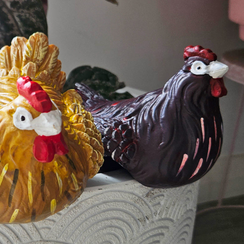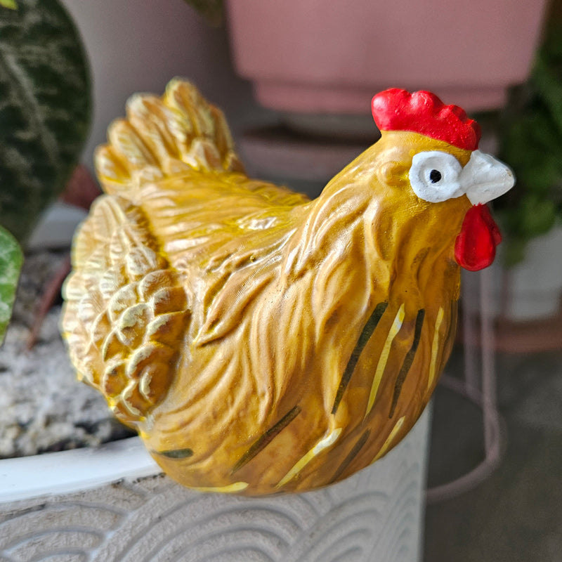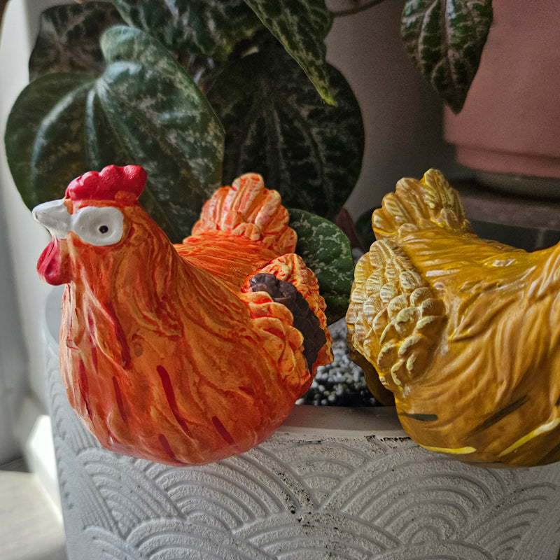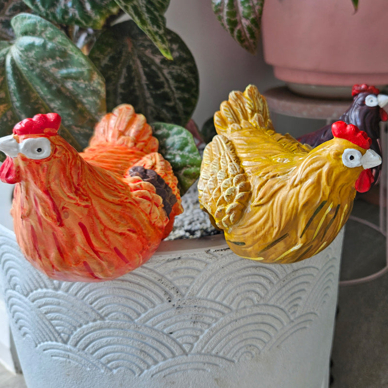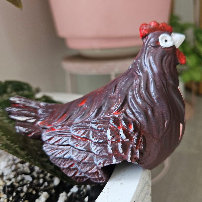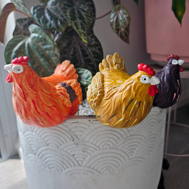 A gorgeous chicken figurine that sits at the top of your pot plant., branch, vase or trellis. Adds a decorative touch to liven up your garden. The perfect little gift for any plant lover or a treat for yourself. Available in 3 colours, each sold separately.