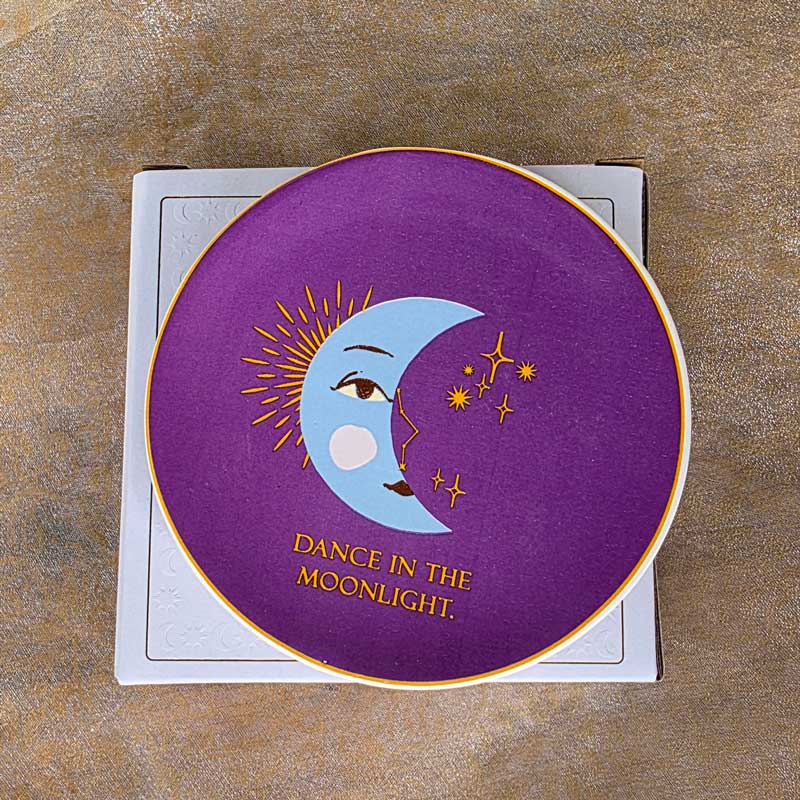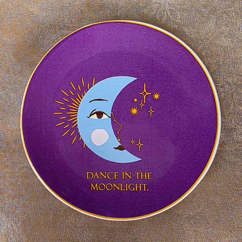 This dreamy ceramic trinket dish features a moon design and the inspirational words "Dance in the moonlight". It will look perfect on a dresser or bathroom vanity, holding rings, hair ties or other bits and pieces. Also great for the study, hall or entrance table to keep loose change or loose keys etc.