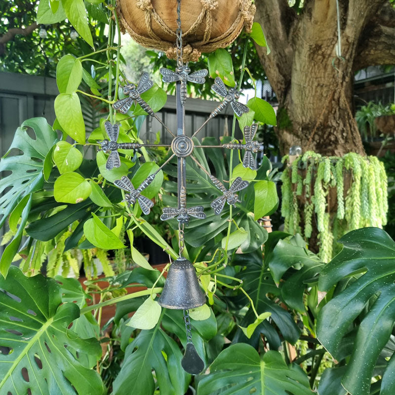 A beautiful carousel inspired wind spinner featuring a dragonfly design in a blue rustic finish. Liven up your garden space and enjoy the sweet tinkling sound of the bell that hangs at the bottom of the spinner. A charming addition to your garden, alfresco area or outdoor setting.