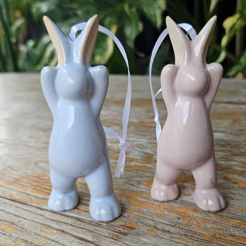 Hanging Ceramic Bunny - Pink