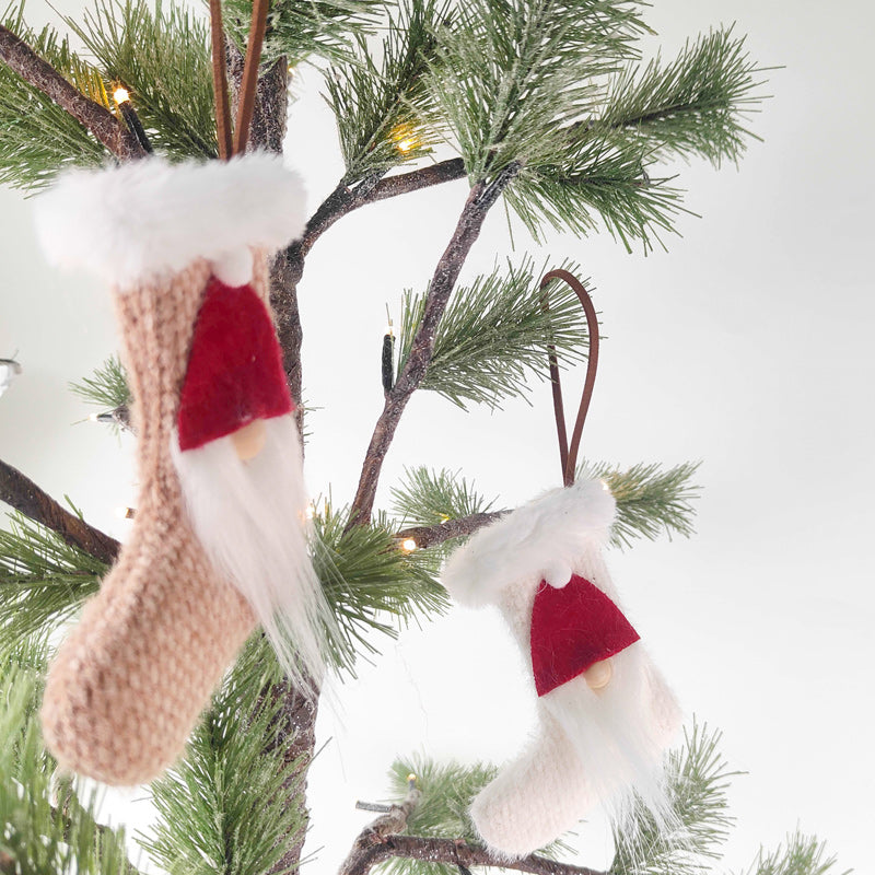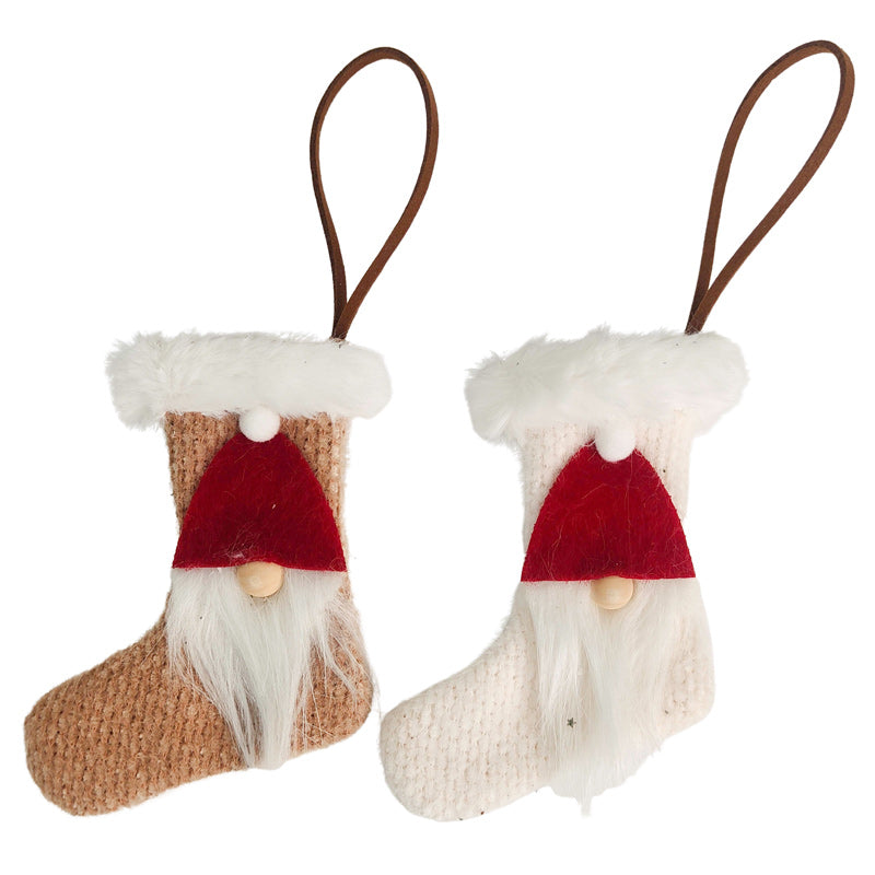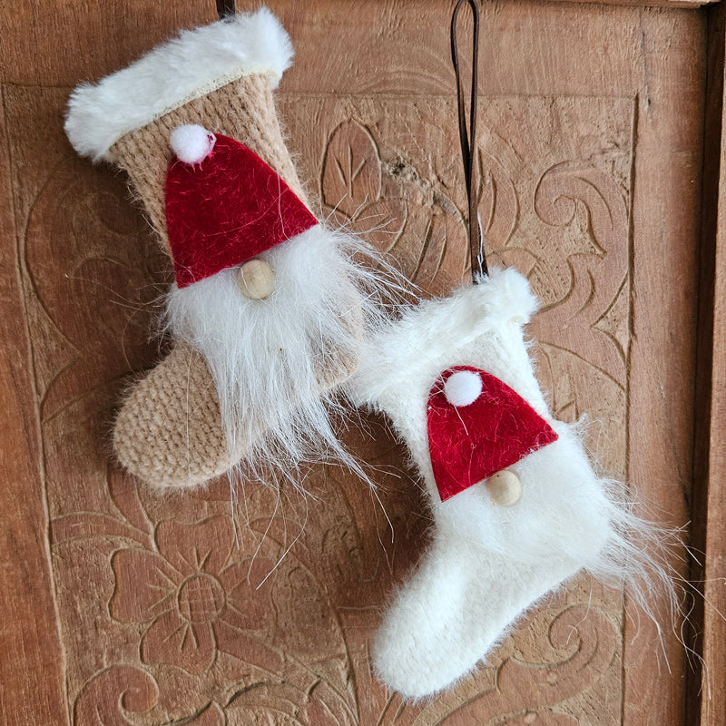 A cute hanging Christmas mini stocking with a lovely tomte Christmas gnome design.