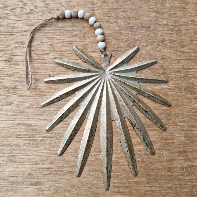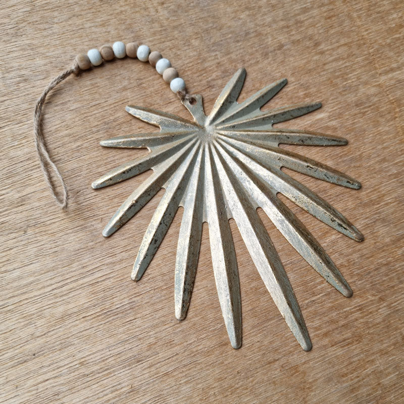 A lovely hanging palm leaf ornament in a pretty shade of gold. Crafted from metal and so versatile - it can be hung on its own or used on the Christmas tree, or any time of year really!