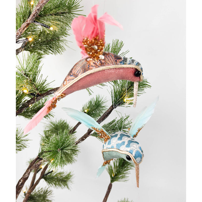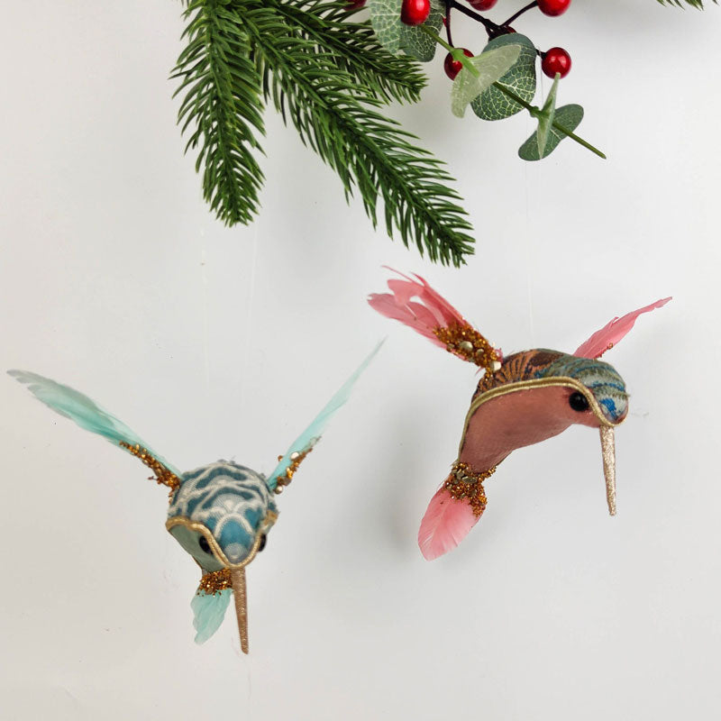 Hanging Hummingbird Paisley Christmas Ornament - Pink