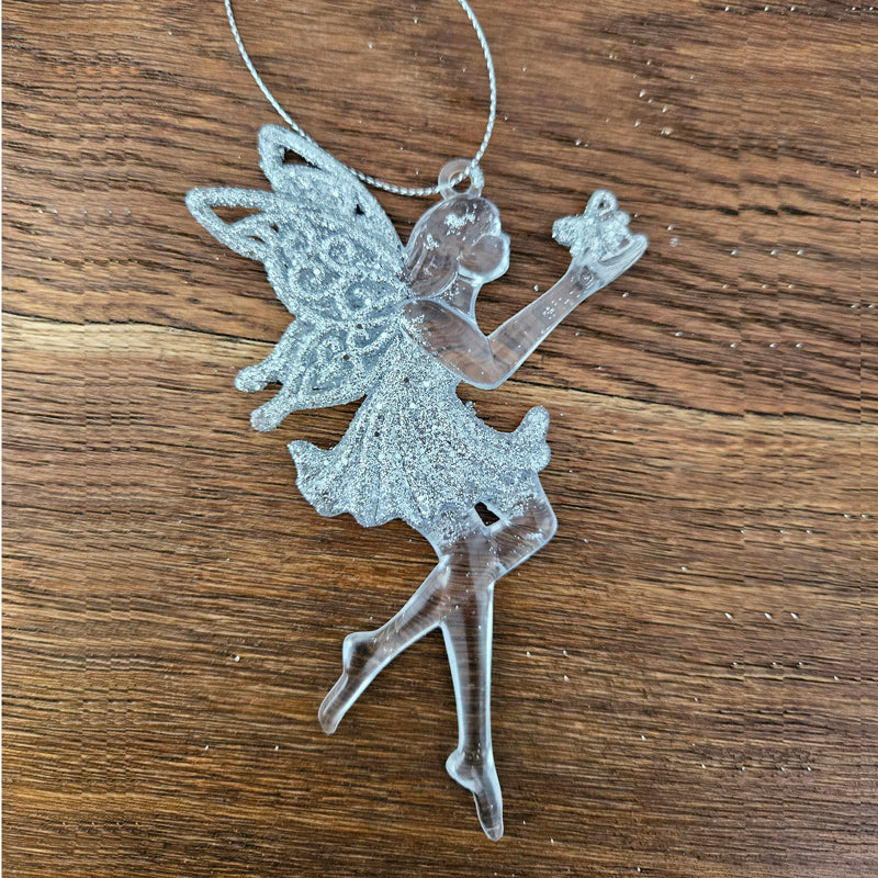 A pretty hanging angel fairy ornament with sparkling glittery detail!