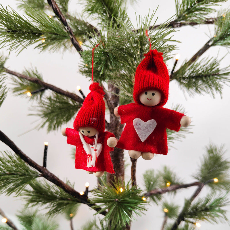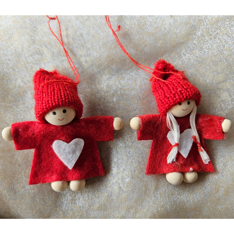 A very sweet set of 2 hanging Christmas mini tomte people with lovely knit hats.