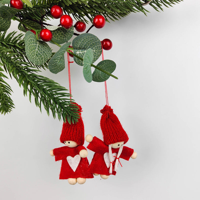 Hanging Tomte Couple Christmas Ornament Set of 2 - Red